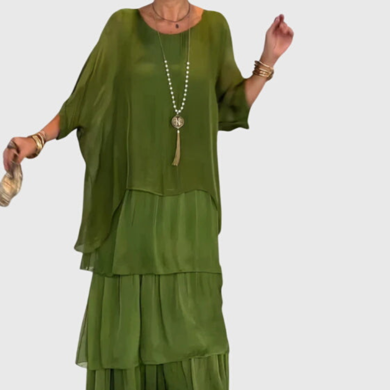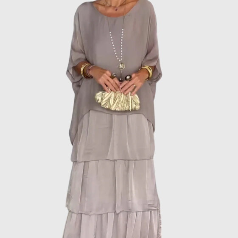 Du fortjener en kjole som gir deg stil, bevegelsesfrihet og tidløs eleganse. Denne lagdelte maxikjolen gir deg en luftig passform, et sofistikert design og en stil som gjør antrekket ditt både avslappet og elegant.