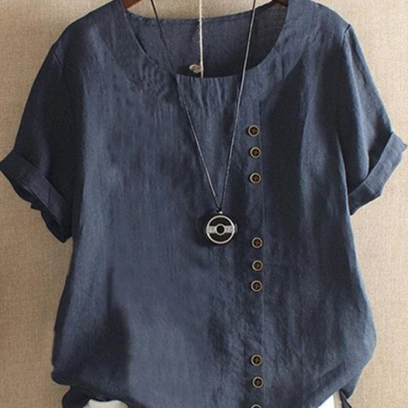 Belle™- Knappet T-skjorte med Rund hals