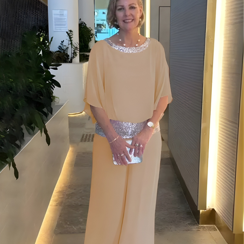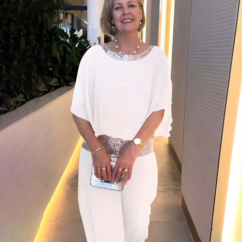 Du ønsker et antrekk som gir sofistikert eleganse uten å ofre komfort. Dette to-delte settet gir deg en flytende passform, elegante detaljer og en stilfull look som gjør at du føler deg selvsikker ved enhver anledning.