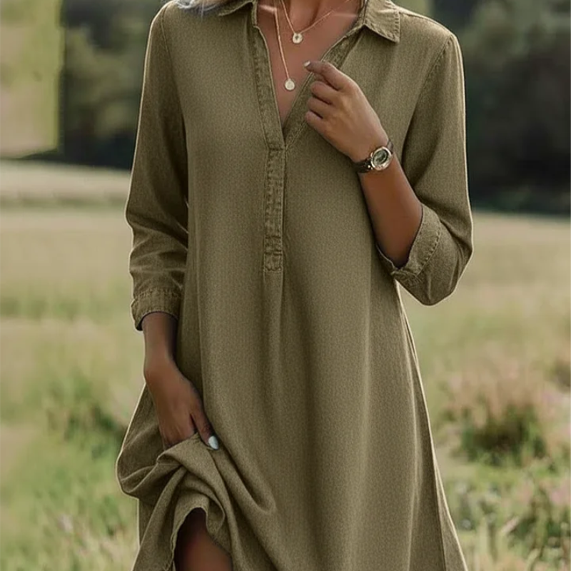 Avslappet design: Du får en tidløs skjortekjole som gir antrekket ditt en stilren og uanstrengt eleganse.